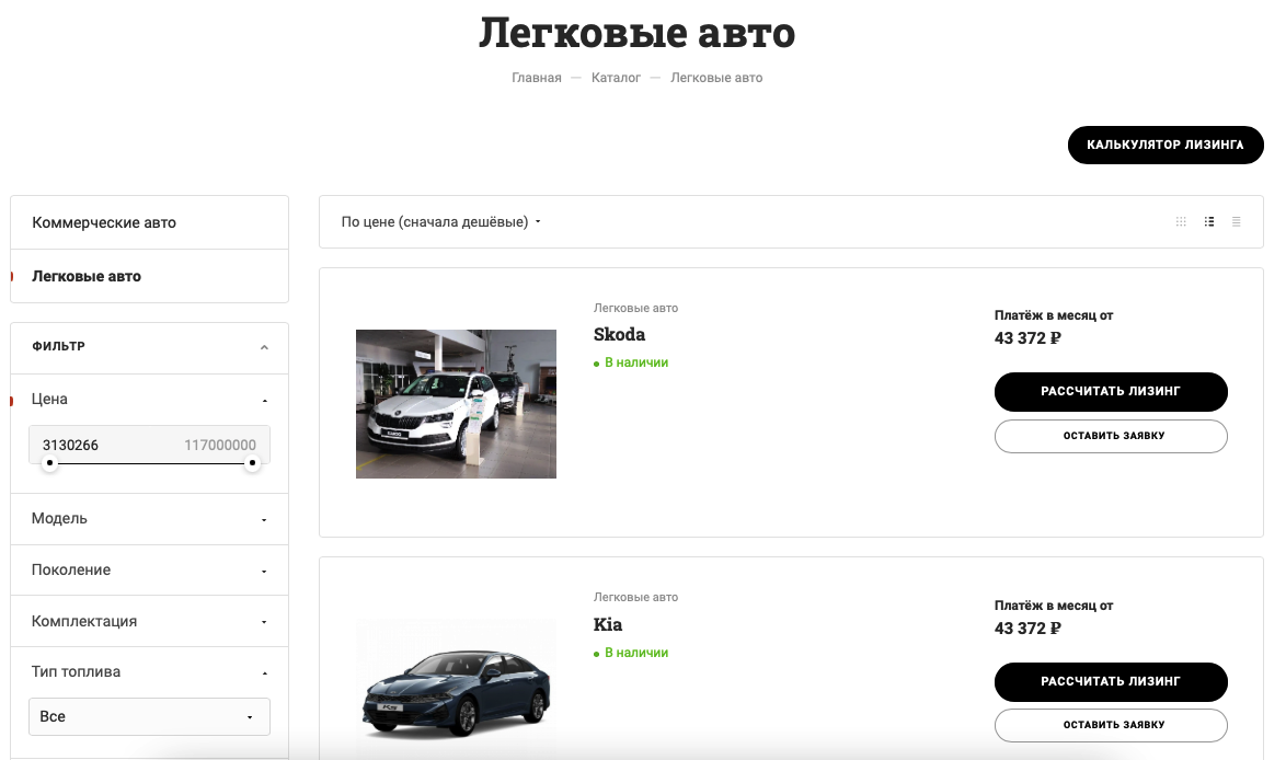 С нами вы получаете лучшие предложения на лизинг легковых, лёгких коммерческих и грузовых автомобилей, специализированной дорожной и сельскохозяйственной техники, оборудования, техники для спорта и отдыха, а также коммерческой недвижимости.